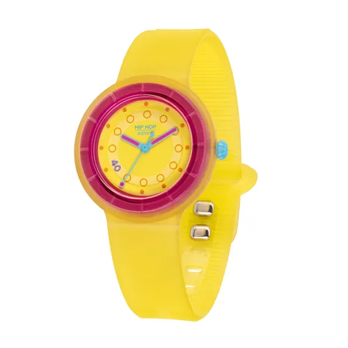La collezione Hero.Dot è connotata da un design inedito e innovativo, fedele tuttavia alle peculiarità del marchio, come la ricca proposta di colori che esprime il carattere vivace proprio di Hip Hop. I modelli Hero.Dot hanno un cinturino in silicone sottile e confortevole con effetto soft e si caratterizzano per la chiusura .Dot in acciaio, che permette di regolarne di volta in volta la misura in modo semplice e immediato. Come tutti gli orologi Hip Hop, anche questi sono scomponibili e totalmente riciclabili o riutilizzabili: ogni modello è composto da un cinturino e una cassa che si possono separare tra loro permettendo di montare quest’ultima a cinturini di colori diversi in silicone, anallergico, atossico e non inquinante, acquistabili separatamente.