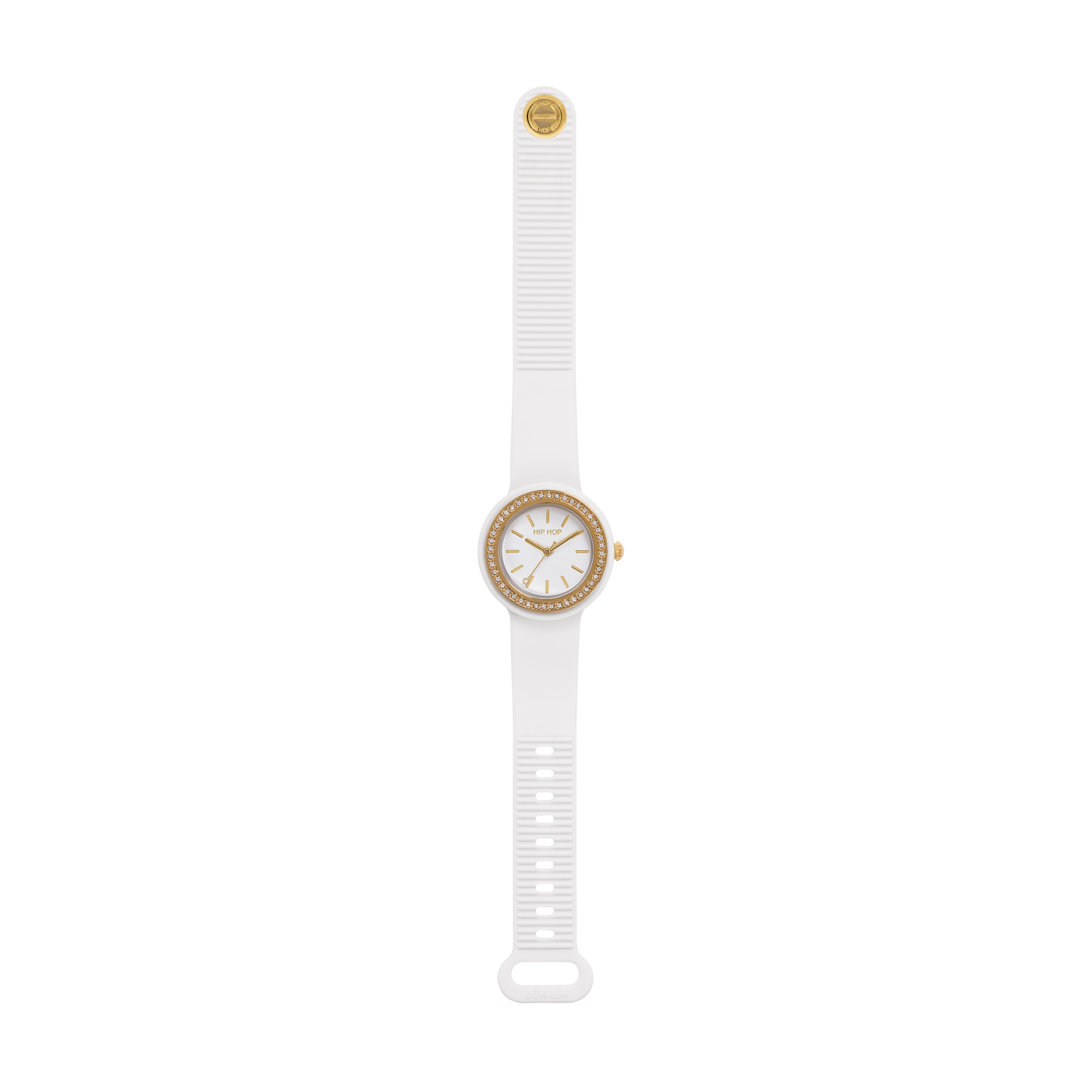 Hero.DOT Bezel Glam è il connubio perfetto tra design glam e spirito contemporaneo. Il suo tratto distintivo? La lunetta in metallo gold impreziosita da cristalli, un dettaglio che dona un tocco glamourous perfetto per chi non vuole passare inosservat*! _x000D_ Il quadrante glossy bianco dall’effetto lucido amplifica la luminosità del design, si abbina perfettamente al cinturino in silicone eco-friendly color bianco: morbido, resistente e intercambiabile con gli altri modelli della collezione Hero.DOT. A completare il look, la corona e la chiusura .DOT in acciaio IP gold, che aggiungono un tocco moderno e ricercato. Un orologio dal carattere deciso, pensato per chi vuole brillare ogni giorno con personalità.