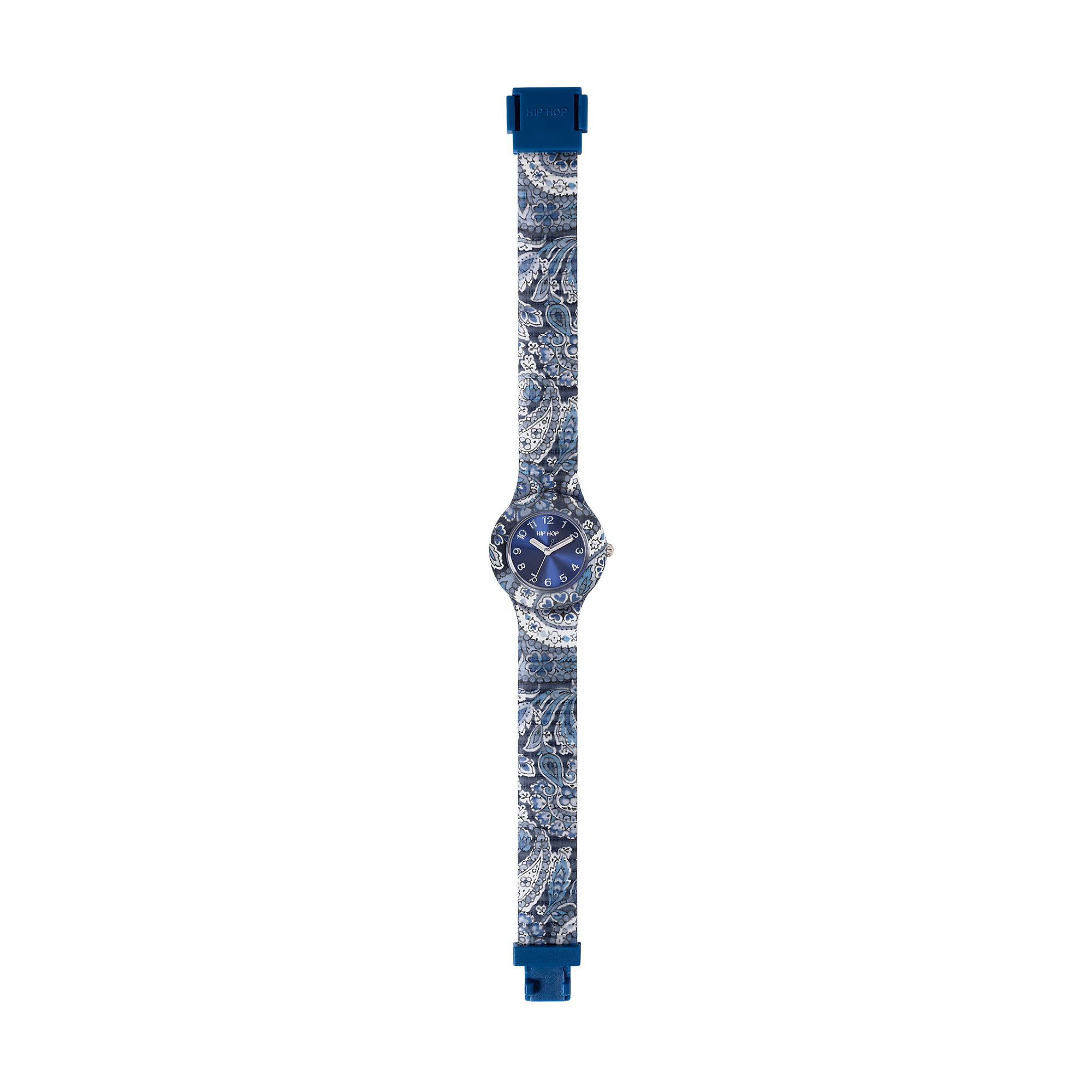 Impreziosito dai tessuti di Liberty London, questo orologio è perfetto per chi desidera aggiungere un tocco distintivo al proprio stile quotidiano. La cassa da 32mm ospita un quadrante color blu, reso brillante dalla lavorazione sunray. Il cinturino, che grazie alla tecnica RPL (Rubber Pressing Layer) combina silicone ipoallergenico e popeline di cotone, presenta un elegante motivo Paisley che si abbina perfettamente al colore del quadrante. Ogni orologio della collezione Paisley è unico e si distingue per il suo design esclusivo.