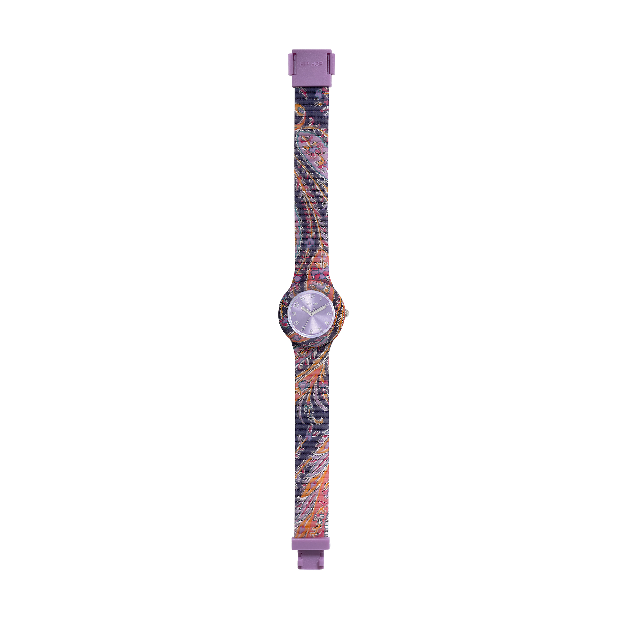 Impreziosito dai tessuti di Liberty London, questo orologio è perfetto per chi desidera aggiungere un tocco distintivo al proprio stile quotidiano. La cassa da 32mm ospita un quadrante color lilla, reso brillante dalla lavorazione sunray. Il cinturino, che grazie alla tecnica RPL (Rubber Pressing Layer) combina silicone ipoallergenico e popeline di cotone, presenta un elegante motivo Paisley che si abbina perfettamente al colore del quadrante. Ogni orologio della collezione Paisley è unico e si distingue per il suo design esclusivo.